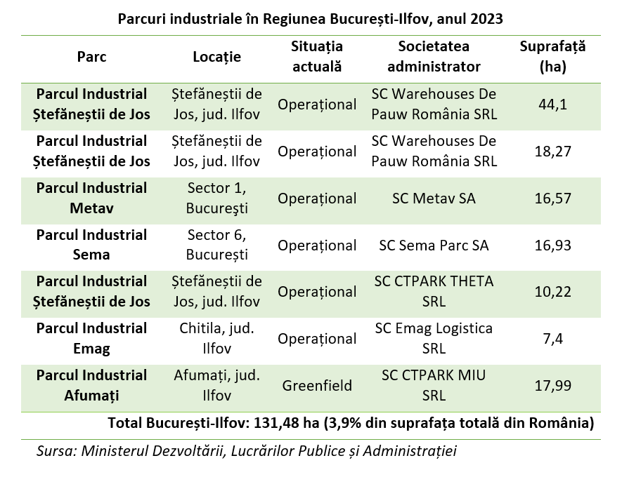Date macroeconomice cu privire la Municipiul București – Parcuri industriale