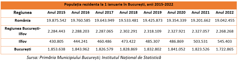 Date macroeconomice cu privire la Municipiul București – Populația